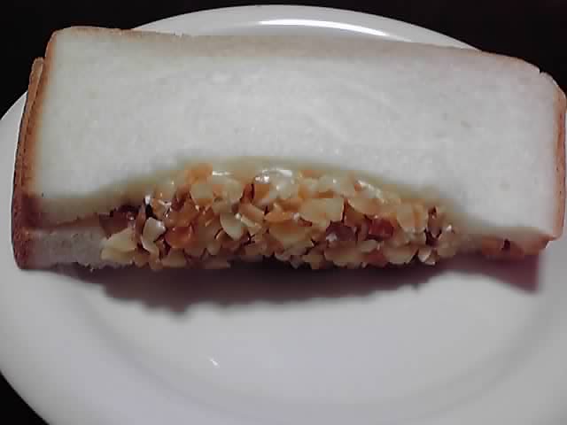 何というか…すごい外見ですね(*゚Д゚) 断面に刻んだナッツぎっしりっていうのは、なかなかサンドイッチの発想としてはないと思います。