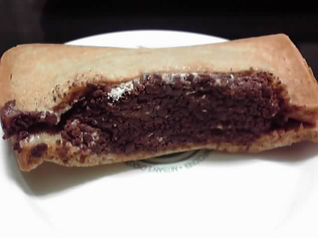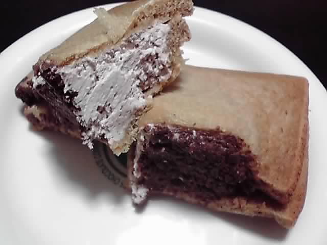 このクリームはわずかに茶色味がかっているので最初はココア味かと思いましたが、どうやらキャラメル味のようでした。これまた、フワフワと食感が軽いので甘いのにくどさを感じませんが、キャラメルっぽいちょっと焦げたようなわずかな苦み(※ほめ言葉です)は効いているし、そこにしっとりとしたクッキークランチのほろ苦い甘さ、そしておそらくはココア入りの茶色い食パンの風味が加わり…