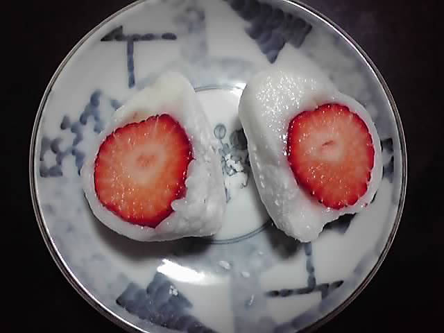 もう、この肉厚の求肥のふっくら感と柔らかさがすごい! 以前食べた桃餅もそうでしたが、羽毛布団のように軽くてフワッフワ! そして、求肥のほのかな甘味がイチゴの甘酸っぱさとあいまって、こんなにシンプルなのに何でこんな奥の深い味になるねん…というおいしさです(*´q`)