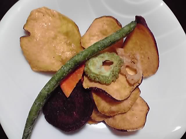 中身はサツマイモ、紫芋、インゲン、レンコン、カボチャ、ニンジン、ゴーヤなど。どれもパリパリ感があって香ばしく、甘さもほどよくて、特にカボチャはサクサク感があってめちゃくちゃツボ(*゚q゚*)