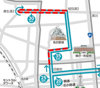 ただ、このエコきっぷで行くには不便なのが、地下鉄の駅がない26~27キロ地点(愛知県図書館前~名古屋城南側)と29~33キロ地点(城見通~康生通)です。