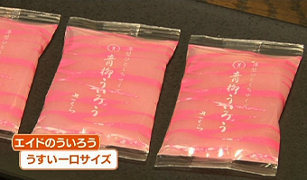 青柳ういろう(さくら味)。もっちりした食感ですが、薄型で甘さひかえめで食べやすいです♪